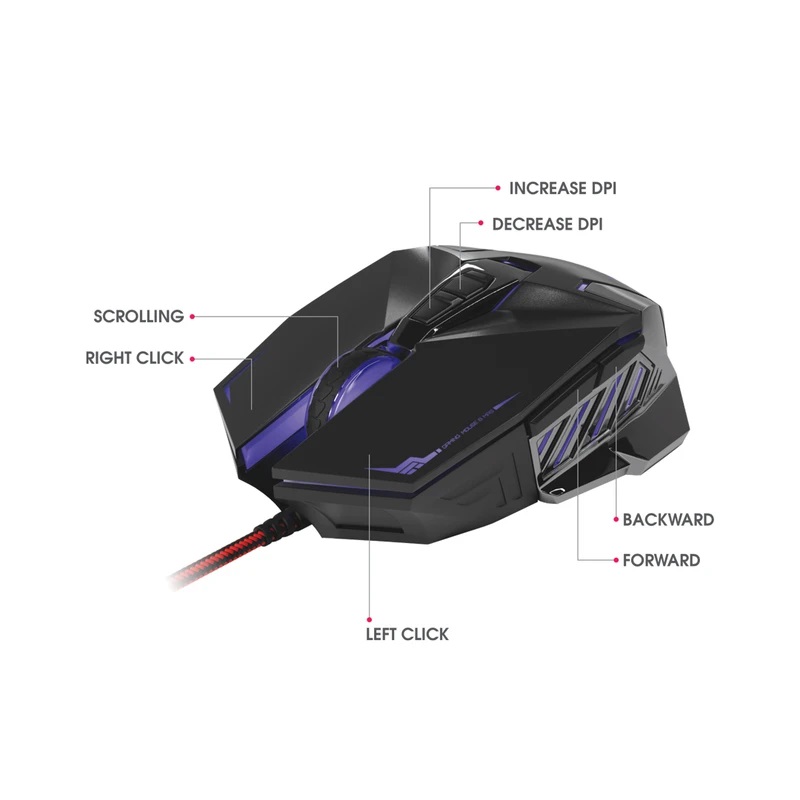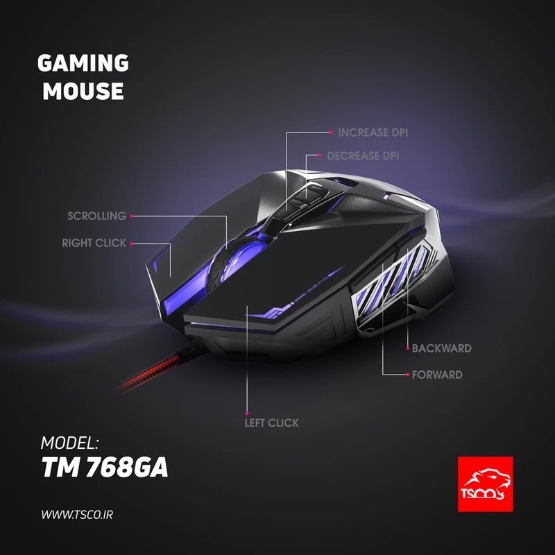 ماوس TM 768GA از لحاظ فنی یک ابزار قابلاتکا برای انجام فعالیتهای حرفهای، طراحی گرافیکی، بازیهای رایانهای و کارهای روزمره محسوب میشود. این ماوس از طریق درگاه USB A به دستگاه متصل میشود و با اتصال سیمی پایدار، نگرانی از بابت قطعی یا تأخیر در دریافت فرمانها را کاملاً از بین میبرد. این مدل باقابلیت تغییر DPI از 600 تا 3200، امکان تنظیم دقت حرکت ماوس را بر اساس نوع فعالیت فراهم میسازد. بهطور پیشفرض روی 800 DPI تنظیم شده، اما بسته به نیاز میتوان آن را روی 1200، 1600، 2400 یا حتی 3200 تنظیم کرد. از نظر دوام، سوئیچهای ماوس تا 3 میلیون بار کلیک تضمین شدهاند که نشاندهنده طول عمر بالا و کیفیت ساخت قابلاعتماد آن است. ماوس تسکو مدل TM 768GA دارای دو کلید جانبی در قسمت کناری بدنه است که برای عملکردهای اضافه یا کلیدهای میانبر بسیار کاربردی هستند. کابل 1.8 متری این مدل از جنس کنفی بافتهشده ساخته شده که علاوه بر مقاومت بالا در برابر کشش و گرهخوردگی، انعطافپذیری مناسبی نیز دارد. این ویژگی باعث میشود تا در حین کار یا بازی، آزادی حرکت بدون مزاحمت فراهم باشد. ماوس TM 768GA با طراحی مشکی و نورپردازی LED، جلوهای مدرن و حرفهای به میز کار یا ست گیمینگ شما میدهد. طراحی این ماوس بهگونهای است که هم از نظر بصری چشمنواز باشد و هم از نظر کاربردی، راحتی و دقت را تأمین کند. بدنه این محصول از جنس پلاستیک ABS مقاوم ساخته شده که در برابر ضربه و خطوخش مقاومت خوبی دارد. علاوهبرآن، با ابعاد 128 در 68 در 37 میلیمتر، فرم آن بهگونهای طراحی شده که در دست گرفتن آن حتی در استفادههای طولانی، احساس خستگی ایجاد نکند . نورپردازی LED در بخشهای مختلف بدنه، ظاهری حرفهای و متمایز به TM 768GA میدهد. این نورپردازی نهتنها جنبه زیبایی دارد؛ بلکه در محیطهای تاریک نیز به کمک کاربر میآید و استفاده از آن را راحتتر میکند. در مجموع، طراحی ظاهری این ماوس بهگونهای انجام شده که علاوه بر جذابیت بصری، کاملاً با اصول ارگونومی و راحتی کار هماهنگ باشد. این ویژگیها باعث میشود تا TM 768GA یک انتخاب ایدهآل برای کاربران دقیق و حساس به جزئیات باشد.