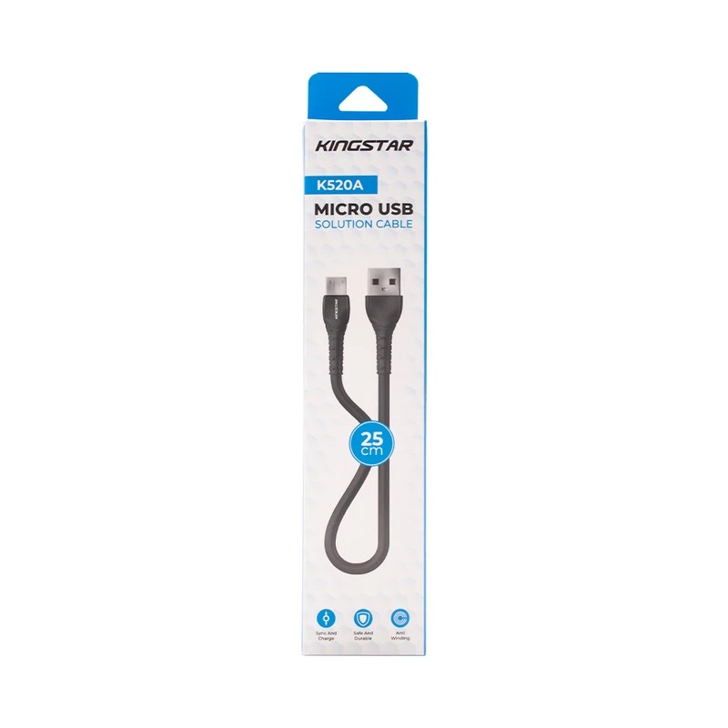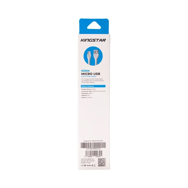 شما با استفاده از کابل micro-USB کینگ استار مدل K520A میتوانید علاوه بر شارژ تلفن همراه خود، اطلاعاتتان را نیز منتقل کنید. در یک سمت این کابل ساخت ایران یک کانکتور micro-USB و در سمت دیگر آن یک کانکتور USB وجود دارد. سمت micro-USB آن مناسب برای تمامی دستگاههای مجهز به این نوع درگاه است. قسمت کانکتور USB آن با لپتاپ، شارژرهای دیواری، پاوربانک و دیگر دستگاههای دارای این درگاه سازگار است. مقدار شدت جریان خروجی این کابل 2.1A است. از دیگر موارد مهمی که میتوان به آن اشاره نمود دوام بالا و کارایی مهم این کالاست. در واقع این کابل با 25 سانتی متر طول برای شارژ دستگاههایی از قبیل ایربادز و هدفون و سایر کالاهای دیجیتال مناسب است که این طول کم موجب کمترین قطع جریان خواهد بود و به دستگاه شما آسیبی نخواهد زد. کابل micro-USB کینگ استار مدل K520A به طول 25 سانتیمتر، در رنگ مشکی و با جنس روکش PVC عرضه شده است. از مزایای مهم این روکش میتوان به مقاوم بودن آن در برابر کشیده شدن و پارگی اشاره کرد.